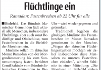 Moscheegemeinden laden alle Flüchtlinge und Bielefelder zum gemeinsamen Fastenbrechen ein (Neue Westfälische)