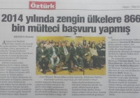 2014 yılında zengin ülkelere 866 bin mülteci başvuru yapmış (Öztürk)